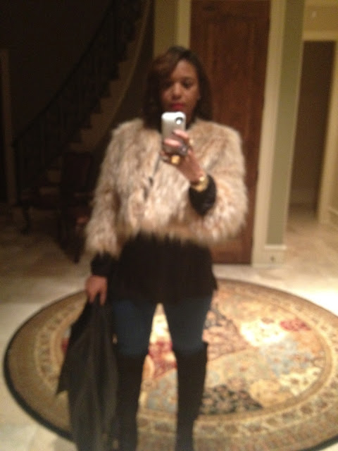 | This pic was not intended for blog, but this is what I wore to concert: Faux Fur jckt from ASOS BCBG jeans and boots |